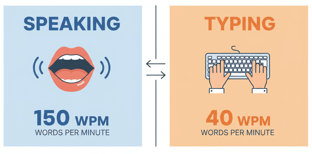 For most of us, it's not even close. The average person chats away at about 150 words per minute, but when we sit down to type, that speed plummets to just 40 WPM.