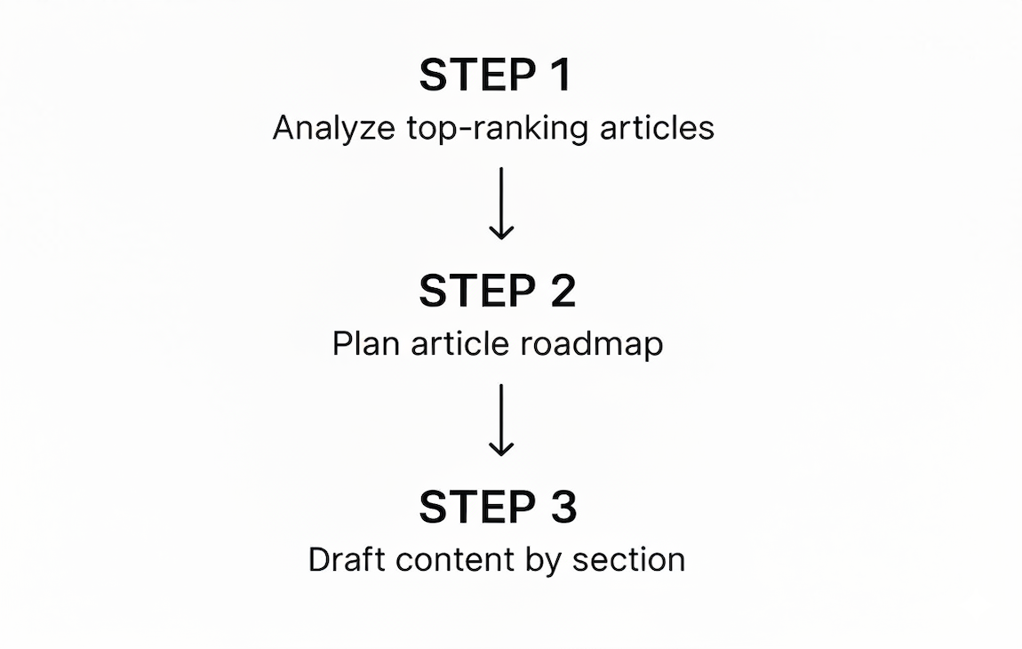 This isn't about scribbling down a few vague bullet points. I'm talking about building the complete skeleton of your article before you even think about writing the first paragraph. When you do this, the writing process completely changes. It stops being a massive creative hurdle and becomes more like a simple fill-in-the-blanks exercise. The heavy lifting—the thinking, the structuring, the keyword strategy—is already done.