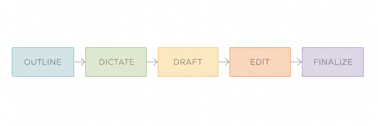 When you try to dictate and edit at the same time, you interrupt your own thought process. Instead of letting ideas flow freely, you start adjusting and refining sentences mid-stream, which slows everything down.